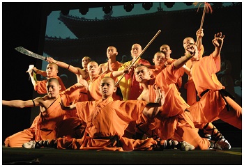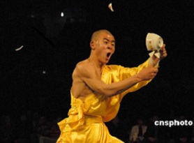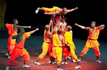 В шоу монахи буквально летают над сценой, выполняют опаснейшие упражнения с мечами, ломают деревянные шесты и погружаются в медитацию стоя на голове.