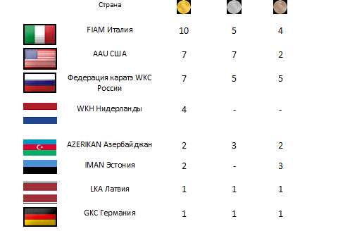 Команда Федерации каратэ России WKC (президент В.А.Тимофеев) заняла 3 место в общем итоговом зачете.