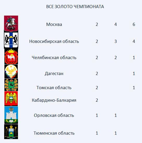 В командном зачете первенствовали спортсмены Москвы, Новосибирской и Челябинской области.