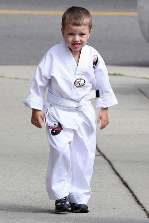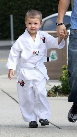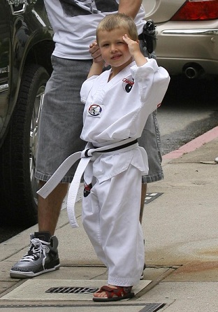 Своего старшего сына 5-летнего Майкла он водит на занятия по каратэ в студию Кита Кука в пригороде Лос-Анджелеса Брентвуде.