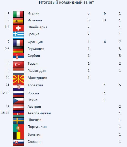 46-й Чемпионат Европы по каратэ WKF. Командный зачет