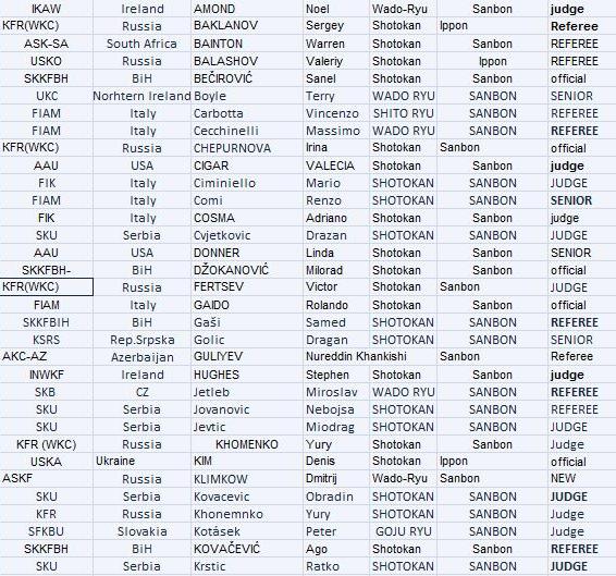 (WKC) опубликовал список рефери и судей, включая их текущий рейтинг и классификацию.