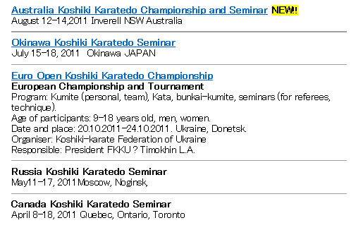 На сайте М.Крысина есть информация о проведении в Германии с 22 по 23 октября Чемпионата Мира по Косики каратэ.