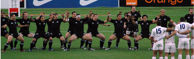 Перед игрой All Blacks обычно выполняют ка-матэ (хаку) – традиционный боевой танец маори. Это как командные ката в каратэ. Только смотрится куда как мощнее – угрожающие жесты 15 огромных мужчин, сопровождающиеся боевыми кликами (на фото).