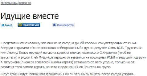 Отдельный вопрос г.г.Тимофееву и Соколовскому: «Вы одобряете статью «Идущие вместе»? Ведь это опубликовано на сайте Вашей Федерации!