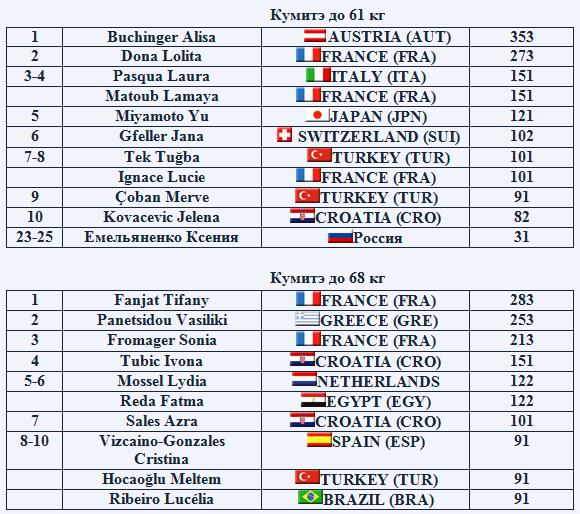 По итогам турниров Премьер Лиги – Париж, Стамбул, Зальцбург