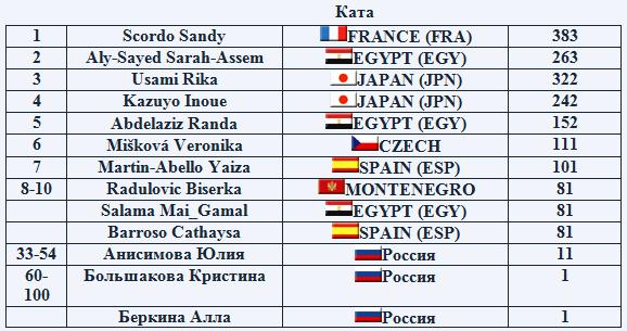 Рейтинг World Karate Federation (WKF) 2011 года. Женщины