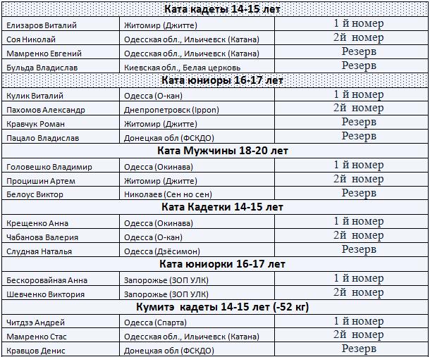 Для участия в Чемпионате Европы по каратэ WKF среди кадетов, юниоров и U 21 (10 -12 февраля 2012г., г. Баку, Азербайджан)