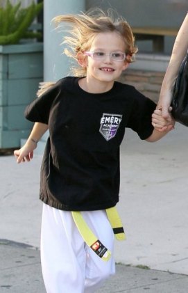«У меня есть преимущество, потому что у меня много свободы. Я хочу использовать её, чтобы обеспечить для наших дочерей настолько нормальную и комфортабельную жизнь, насколько я могу позволить»,- говорит актриса, которая каждую неделю сама водит свою старшую дочь на занятия по каратэ в Академию боевых искусств Emery (Emery Academy of Martial Arts) в Лос-Анджелесе.
