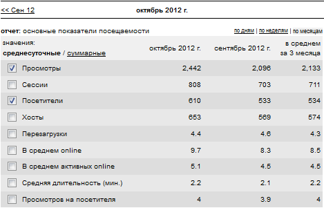 На сайте, слева внизу, расположены четыре счетчика. Мы учитывали самые меньшие показатели (второй счетчик снизу). По другим счетчикам количество ежедневных посещений значительно выше.