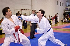 Продолжительность поединка в кумитэ: 10-11 лет - 1 минута, 12-13 лет - 1 мин. 30 сек. Остальные категории - согласно првилам WKF.