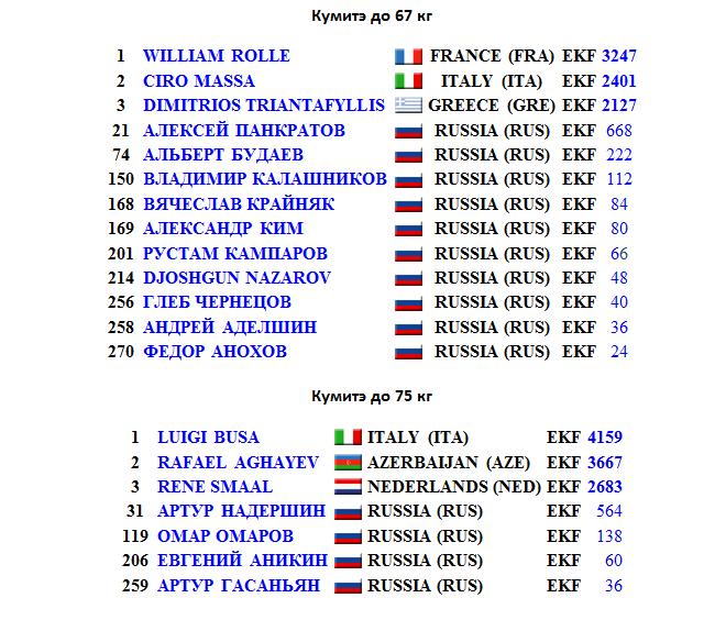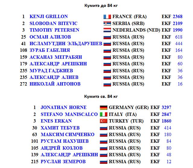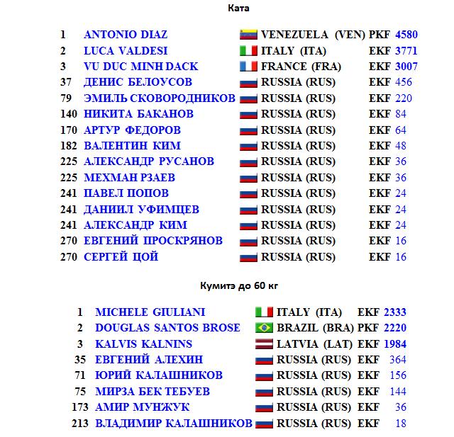 > Рейтинг World Karate Federation (WKF) 2012 года. Мужчины