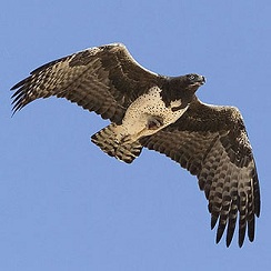 Размах крыльев боевого орла достигает 2,6 метров и он способен поднять в воздух ягненка или шакала, хотя обычная его добыча птицы, змеи, вараны.