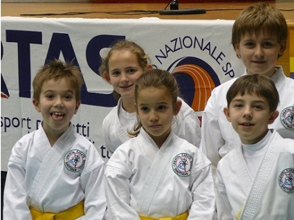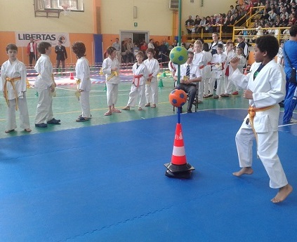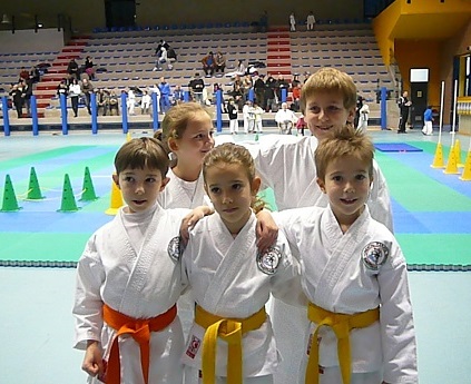 Участники: дети 6-7, 8-9, 10-11 лет. Соревнования проводятся в виде тестов на физическую подготовленность, по квалификационным группам - желто-оранжевый/зеленый-синий-коричневый пояса. В программе - кумитэ с мячом, при этом оценивается только эффективная техника, эстафеты, упражнения на координацию, преодоление препятствий. В командных соревнованиях пара спортсменов одного клуба в течении 30-40 секунд демонстрируют показательный спортивный поединок. Спортсмены в показательном кумитэ должны быть экипированы по правилам WKF.