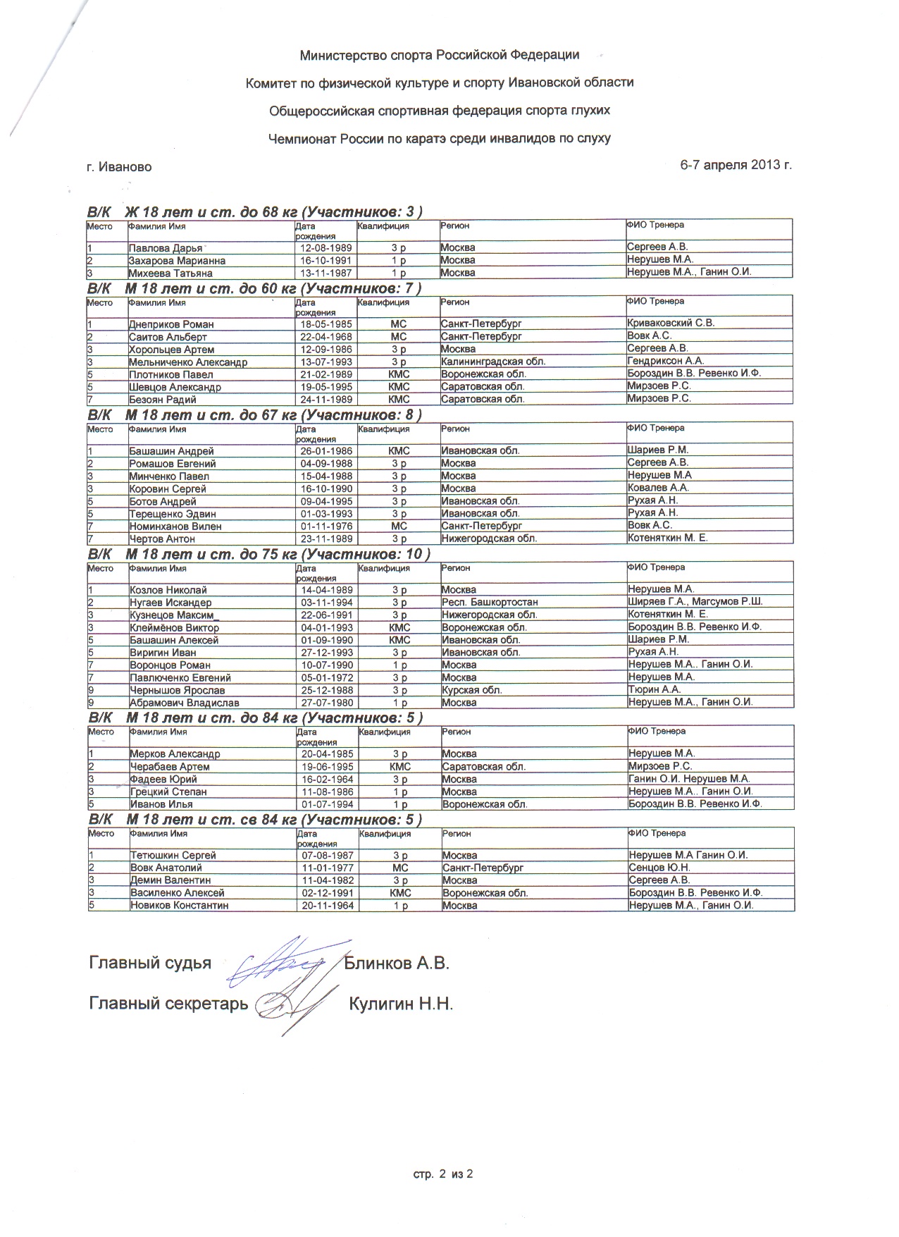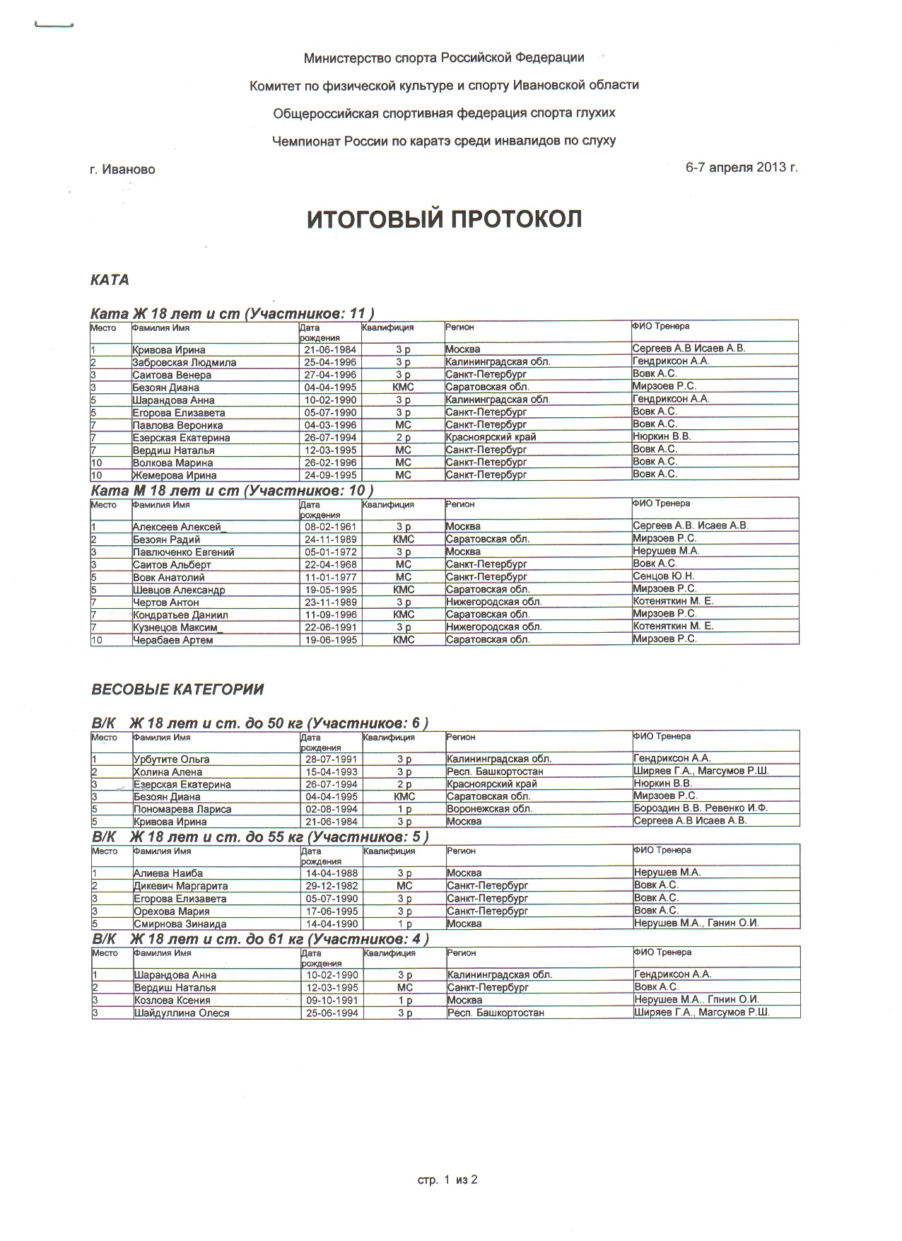 Итоги Чемпионата России по каратэ 2013 года среди инвалидов по слуху