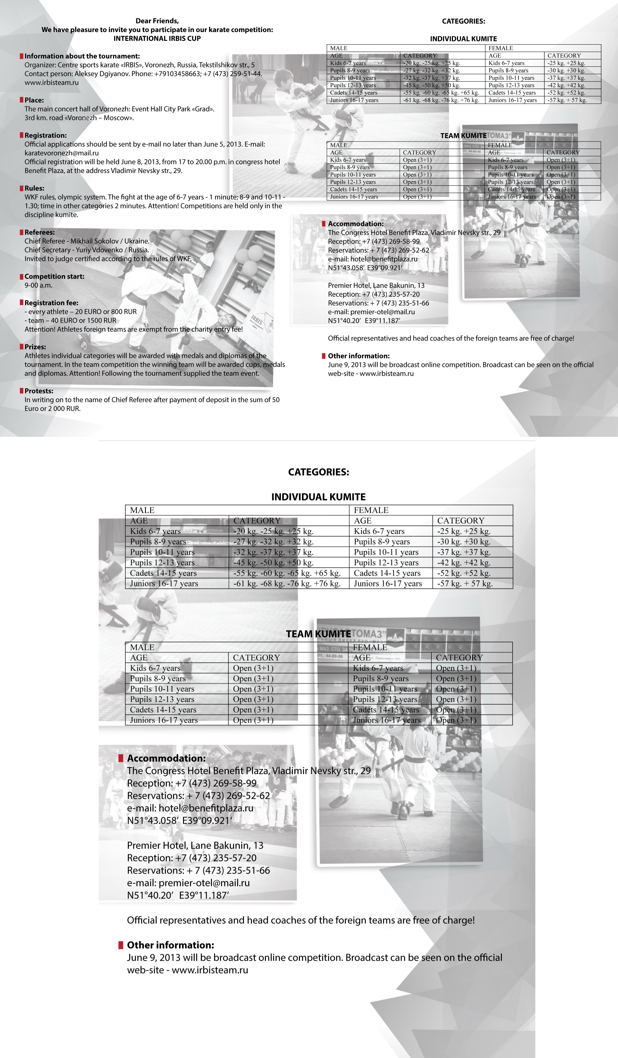 8-9 июня в главном концертном зале Воронежа Event Hall состоится международный турнир по каратэ International IRBIS Cup 2013