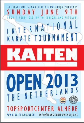 9 июня в голландском Альмере (Аlmere) пройдет международный турнир «Kaiten Open 2013» по каратэ WKF.