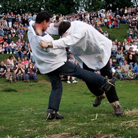 Чем они отличаются от нормальной Олимпиады — это, конечно, потешностью. Например, в забеге по скользкой поверхности с ведрами воды в руках, которая потом выливается на соперников. Или надо бежать не просто так, а тащить тележки, а в тележке находится ваш коллега, достаточно тяжелый. Из этого же ряда dwile flonking: одна команда пытается осалить другую, но не просто так, а большой тряпкой, вымоченной в пиве, а вторая команда старается увернуться, но при этом еще должна танцевать. Одной из кульминаций, всемирно известным видом соревнований является shin kicking — буквально говоря, это "битье по голеням". Два спортсмена держат друг друга за плечи, но можно при этом бить по ногам. Перед началом соревнований разрешается соломы себе напихать под гетры или под носки, чтобы не так больно было.