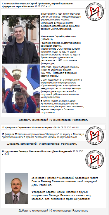 P.S. На одной странице с поздравлениями висит некролог Сергею Милованову, текст которого полностью позаимствован с нашего сайта. Нам не жалко, но редакционная политика сайта Московской федерации весьма причудлива. Ворованные некрологи, поздравления самому себе...