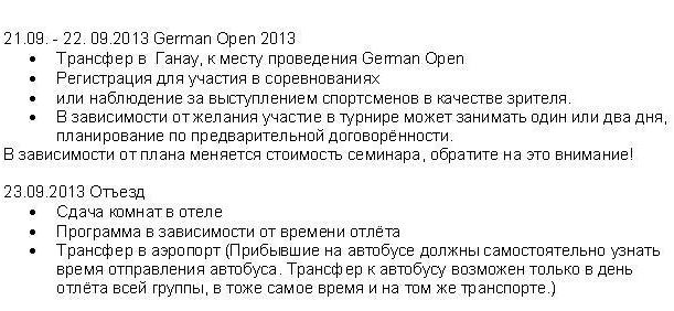 Участие в German Open: по желанию Ваши спортсмены могут принять участие в турнире. Желающие принять участие должны заранее подать заявку.