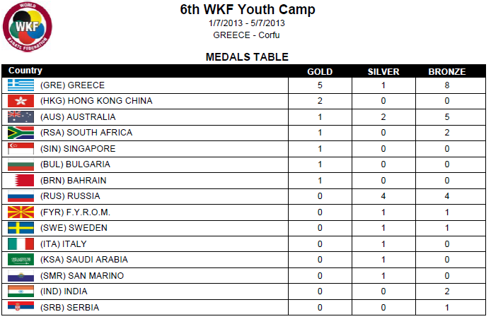 Греция. Итоги Молодежного Кубка каратэ-1 WKF