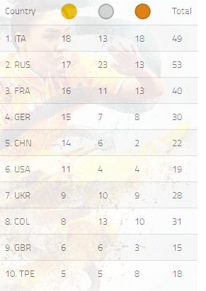Всемирные Игры 2013 в Кали (Колумбия). Командный зачет