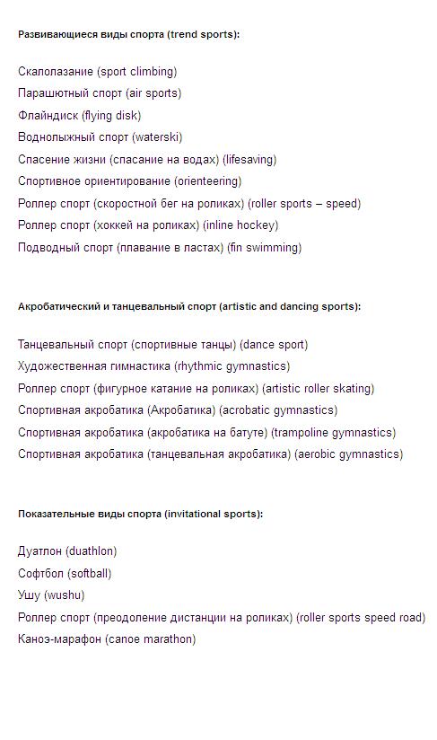 Перечень видов спорта, входящих в программу IX Всемирных Игр-2013