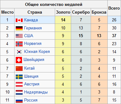 На XXI Олимпийских зимних играх 2010 года (12 по 28 февраля) в Ванкувере сборная Канады завоевала первое место в командном зачете, Россия не попала даже в десятку. И речи нет о том, что в олимпийском Сочи сборная России покажет результат близкий к канадскому. Максимально, на что могут рассчитывать хозяева Игр 2014 - пятое место олимпийского зачета. Канадская сборная будет биться за первые места.