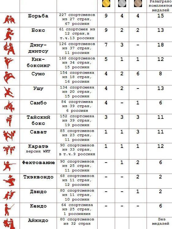 Командный зачет российских спортивных федераций на Всемирных Играх боевых искусств 2013