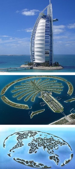 Мировые острова (The World Islands)Искусственный архипелаг, состоящий из нескольких островов, общей формой напоминающий континенты Земли. Мировые острова созданы, главным образом, из песка мелких прибрежных вод Дубая.