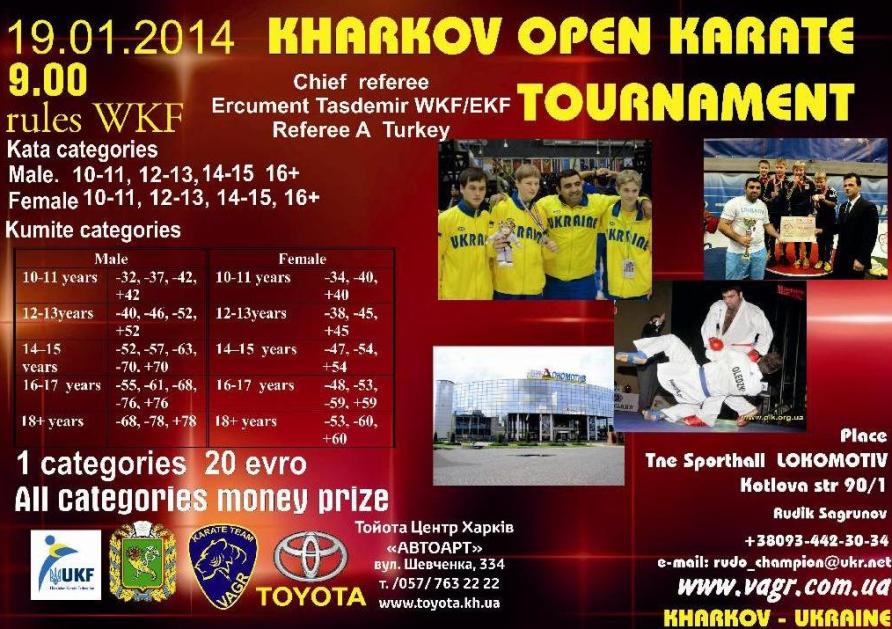 19 января в спорткомплексе "Локомотив" города Харьков пройдет Международный турнир "KHARKOV OPEN" по каратэ WKF.
