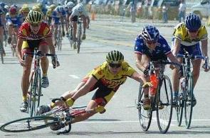 При падении с мотоцикла или велосипеда в первую очередь следует оттолкнуть машину в одну сторону, а самому падать в другую. Глупо в эту минуту думать о сохранности велосипеда или своего костюма. Жизнь всегда дороже всего остального.