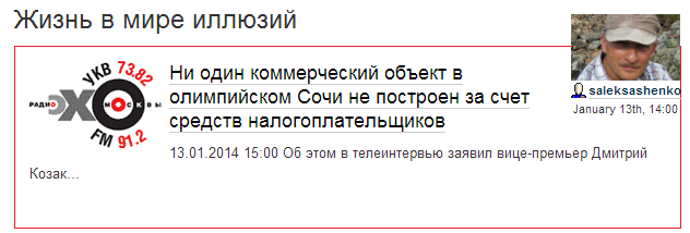 P.S. Помимо того, что олимпийские объекты нужно построить за счет денег налогоплательщиков, за счет тех же средств их придется содержать в будущем. Поверить в то, что население Сочи вырастет в пять раз, и новые жители вдруг возлюбят зимние виды спорта и начнут платить за пользование спортивными сооружениями, я не могу. Не может в это поверить и Искандер Махмудов, который уже год назад безвозмездно передал тому же "Олимпстрою" хоккейную арену "Шайба", которую он построил. Ну, а поскольку у "Олимпстроя" денег нет и не предвидится, то все эти объекты согласно распоряжению правительства от 2 декабря 2013 г. №2243-р будут переданы в собственность Российской Федерации, Краснодарского края и администрации города Сочи. И как вы думаете, за чей счет они будут содержаться?