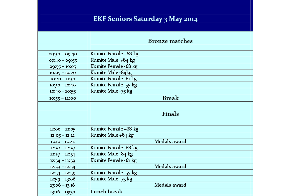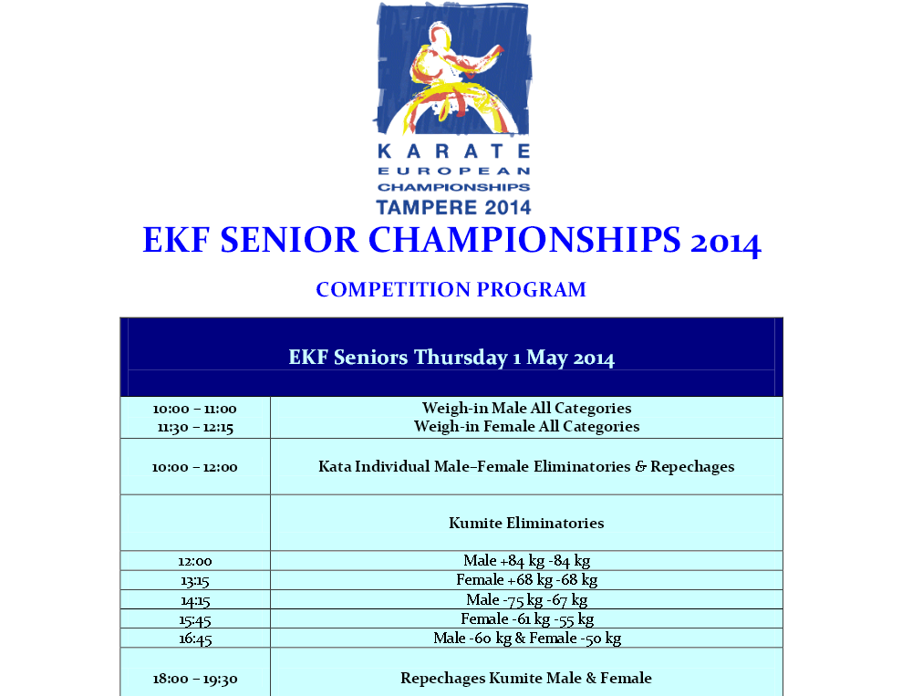 Программа Чемпионата Европы 2014 года по каратэ WKF