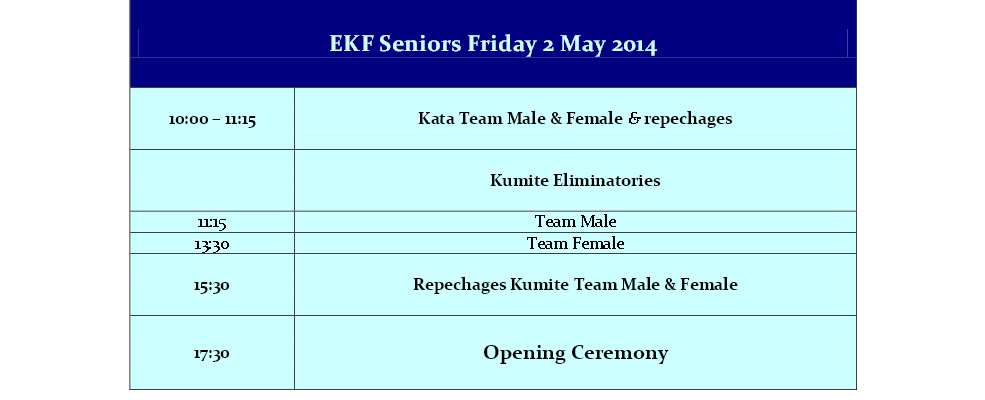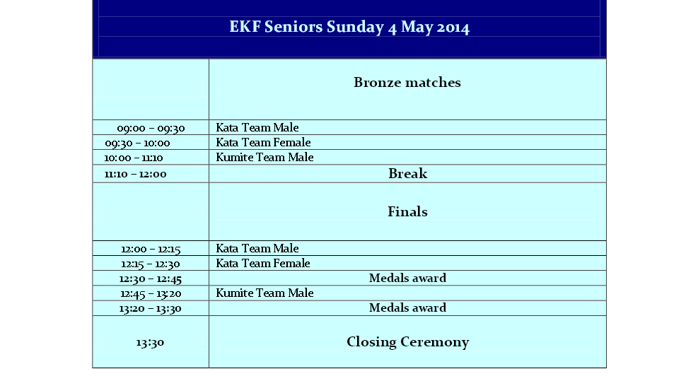 Новости > Программа Чемпионата Европы 2014 года по каратэ WKF
