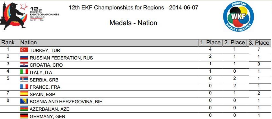 8 июня в Измире (Izmir) завершился 12-й Чемпионат Европы по каратэ WKF среди регионов, в котором приняли участие 118 команд из 20 стран, в том числе 10 команд из России.