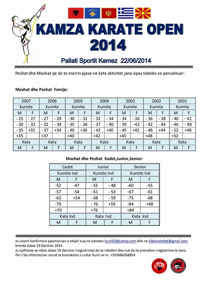 22 июня в городе Камза (Kamza) пройдет Международный турнир "Kamza karate open 2014" по каратэ WKF.