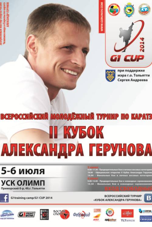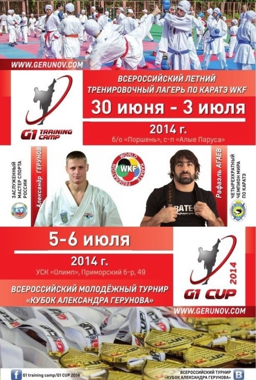 30 июня - 6 июля 2014 года в городе Тольятти пройдёт II Всероссийский летний тренировочный лагерь - "G1 TRAINING CAMP" и молодёжный лично-командный турнир по каратэ WKF "Кубок Александра Герунова - G1 CUP 2014".