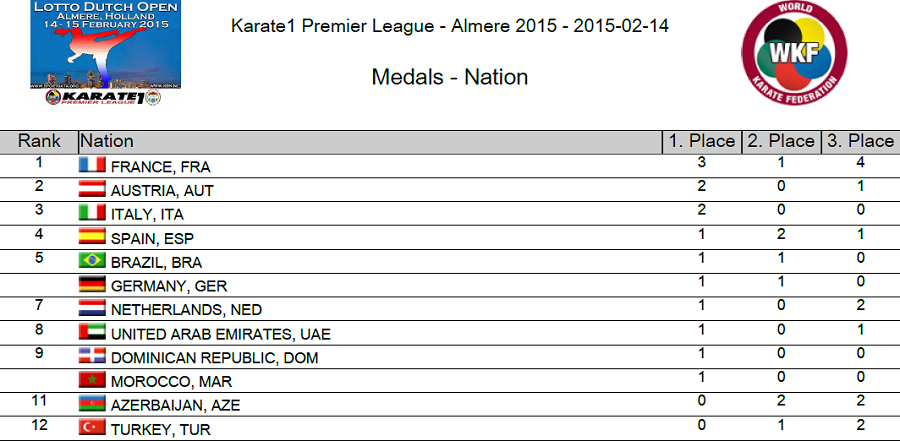 Нидерланды. Итоги второго этапа Премьер Лиги каратэ WKF 2015 года