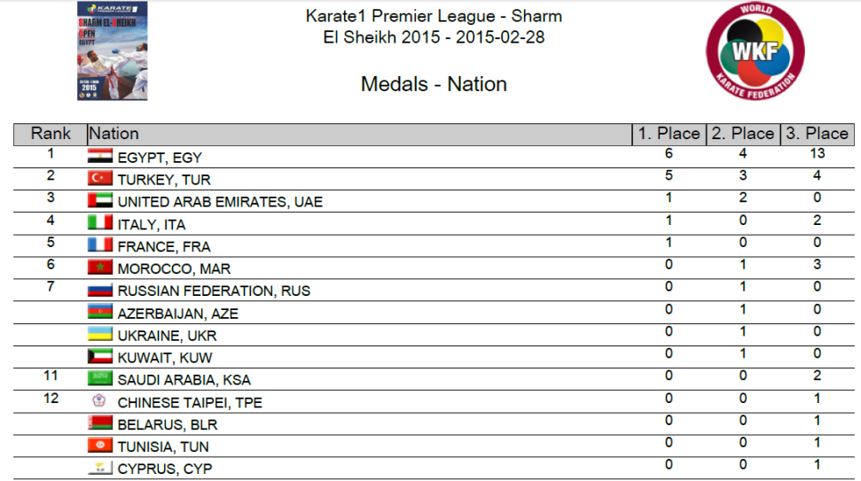Египет. Итоги третьего этапа Премьер Лиги каратэ WKF 2015 года