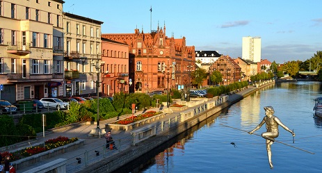 Архитектурные памятники в районе реки Брды и Старого города: позднеготический приходский костёл с чудотворной иконой Богородицы с розой, бывшее зернохранилище с деревянной каркасной конструкцией 18-19 вв., костел кларисок в смешанном стиле готики и ренессанса.