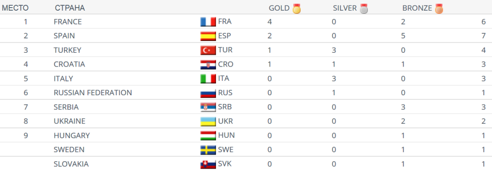 Ката. Кадеты/юниоры, юноши, 13 команд – Италия (4), Испания (2), Сербия (2), Турция (2), Франция, Чехия (2).