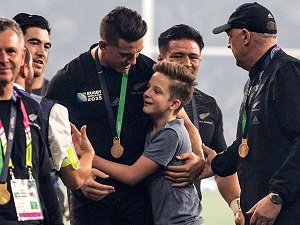 Фейр–плей. Новозеландский регбист подарил золотую медаль Кубка мира мальчику, которого сбил с ног стюард