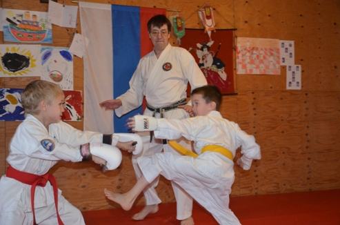 В программе кумитэ себу санбон среди детей 2008-2009 года рождения, весовая категория до 28 кг.