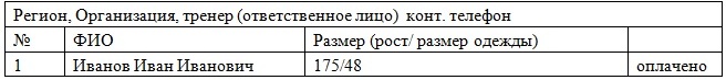1. Для участия на этом мероприятии нужно своевременно сделать заявку на спортсменов, тренеров и судей. Для этого вам необходимо заполнить заявку(смотрите во вложении), в которой вы указываете Фамилию Имя точно так же, как в заграничном паспорте, возраст, пол, категорию выступления, статус (тренер, судья, сопровождающий). Обязательно прикладываете копию заграничного паспорта на всех членов вашей команды, которые собираются поехать, включая родителей и других сопровождающих лиц.