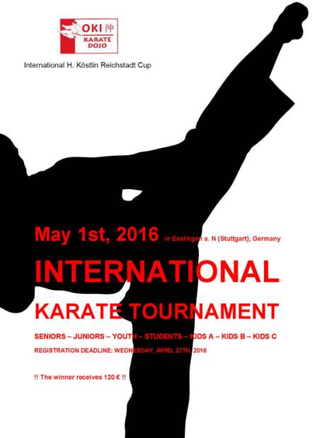 30 апреля в Дюссельдорфе (Düsseldorf) пройдут чемпионат города и турнир «Открытый Кельн» (KDNW Bezirksmeisterschaften Düsseldorf & Köln 2016). Участники – дети с 2000 по 2008 года рождения. Всего 119 индивидуальных и командных категорий. Стартовый взнос 12,5 евро, в командах 25 евро.