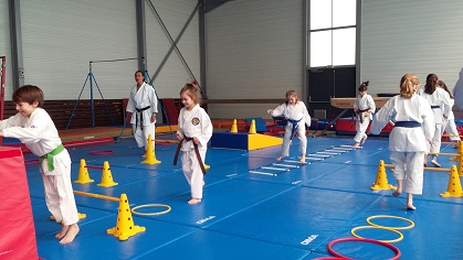 Но в целом, на тренировках основное внимание уделяется отработке кихону и ката. Помимо всем знакомым перемещениям в "дорожках", довольно часто для наглядности используются различные предметы:
