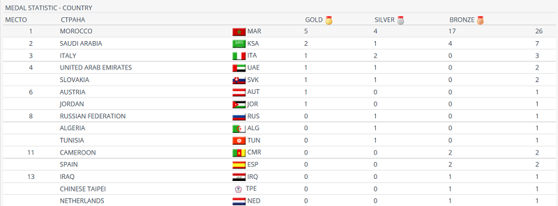 Марокко. Итоги шестого этапа Премьер Лиги каратэ WKF 2016 года
