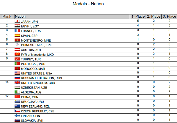 Сборная Федерация каратэ WKF России с одной серебряной медалью заняла в итоговом национальном зачете 9-13 место. В национальном зачете 150-ти млн. Россию опередили такие страны, как Черногория (население 622 тыс. жителей), Тайбэй (2,5 млн.), Македония (2 млн. жителей).