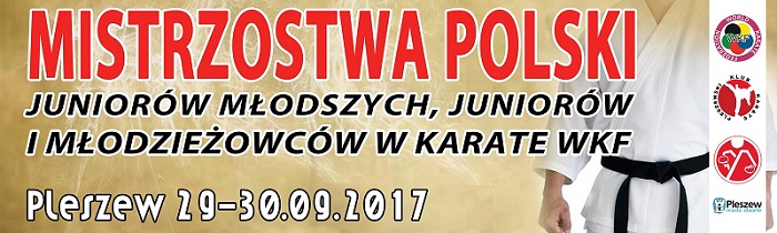 29 и 30 сентября в городе Плешев (Pleszew) пройдет Национальный молодежный чемпионат Польши (MISTRZOSTWA POLSKI JUNIORÓW MŁODSZYCH, JUNIORÓW I MŁODZIEŻOWCÓW) по каратэ WKF.